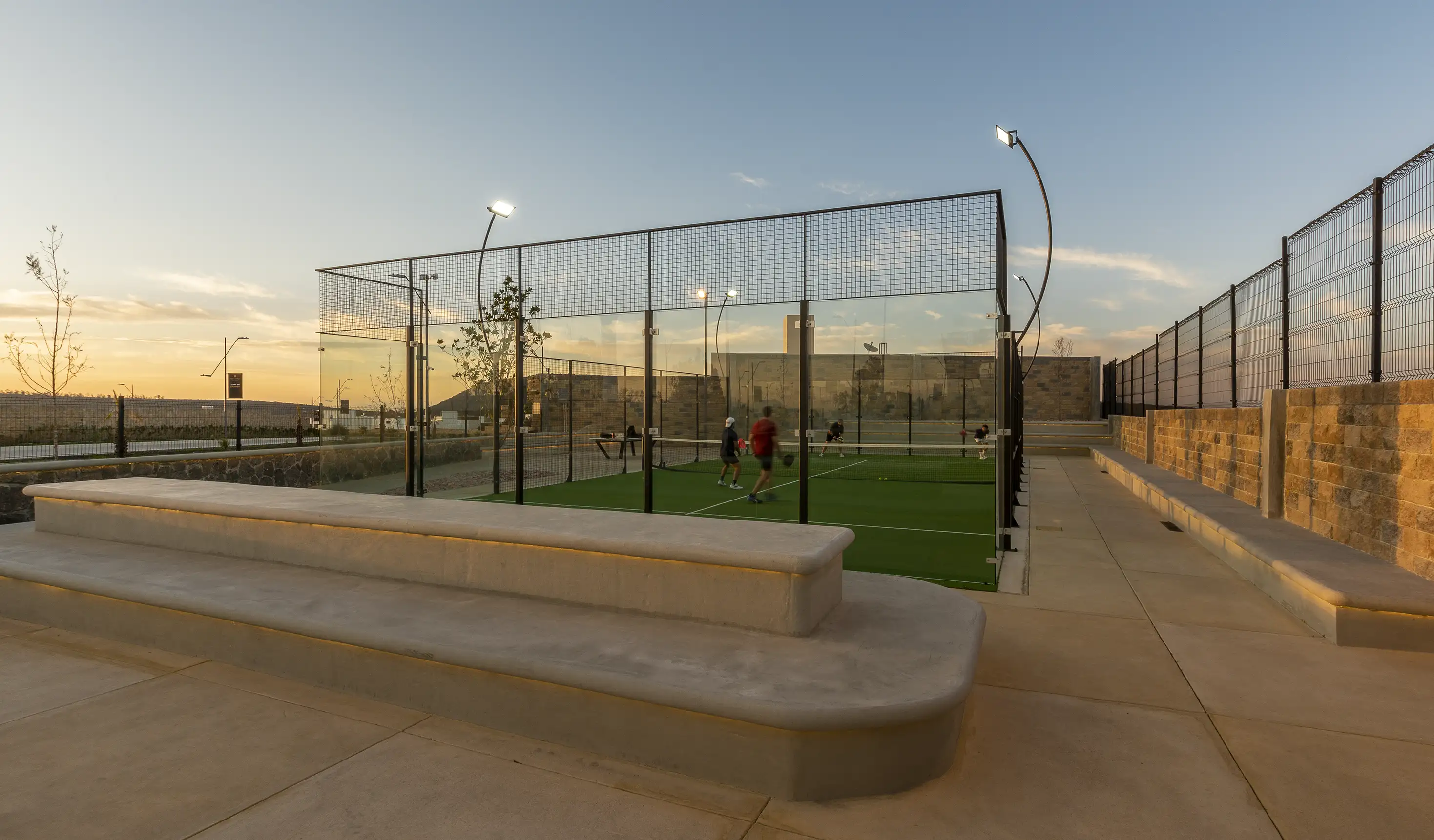 Calles de concreto estampado, amplias vialidades y casa club con amenidades.